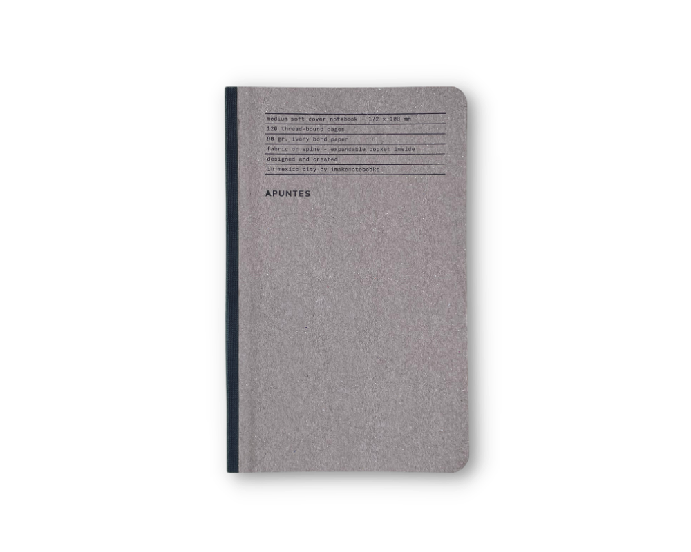 • Hecho en México a mano con técnicas tradicionales de encuadernación en el taller de APUNTES.